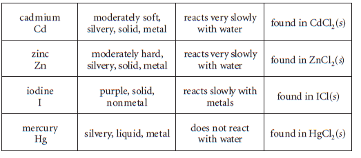 Which of these elements would be grouped together on the periodic table? Explain you thinking. What information helps you determine this? What information is a distracter?