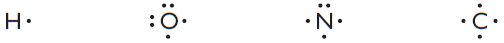 These diagrams are called Lewis dot diagrams. What is the relationship between the number of dots, the number of valence electrons and the HONC 1234 rule?